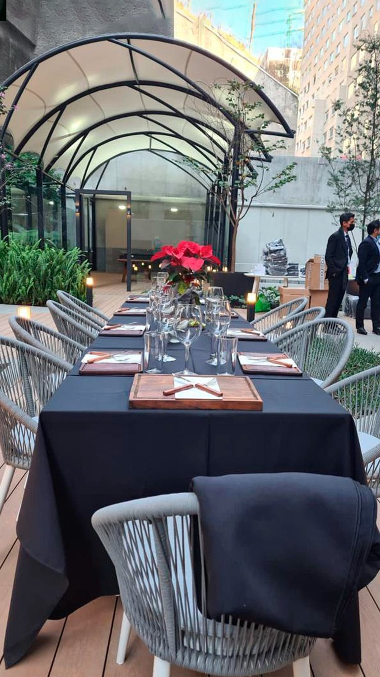 ·Mesas de servicio para preparación de alimentos con mantel negro